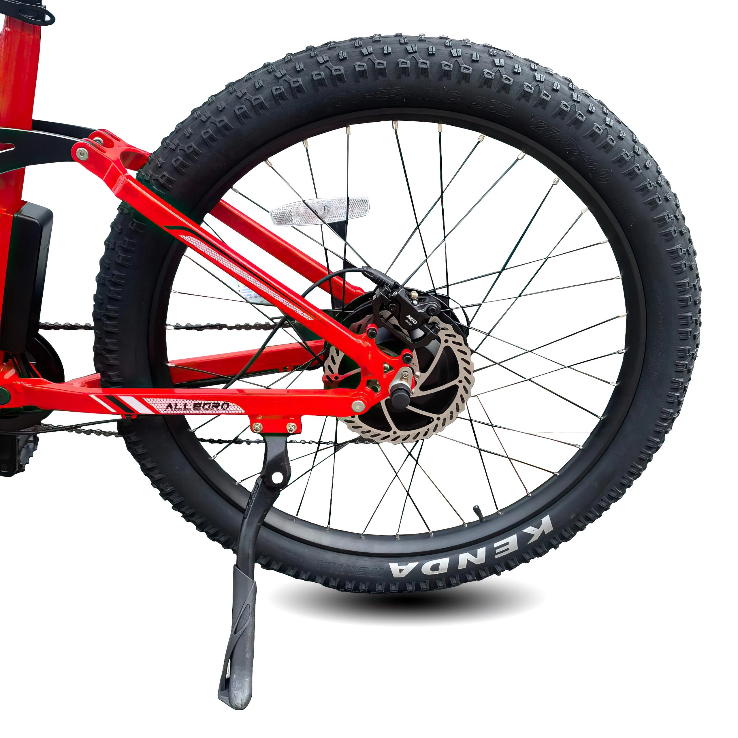 The Lightweight Aluminium Alloy Frame and Kenda 27.5” x 3.0” Tyres provide a robust yet agile structure, ready to tackle different conditions with ease, while the sleek design adds a modern aesthetic.