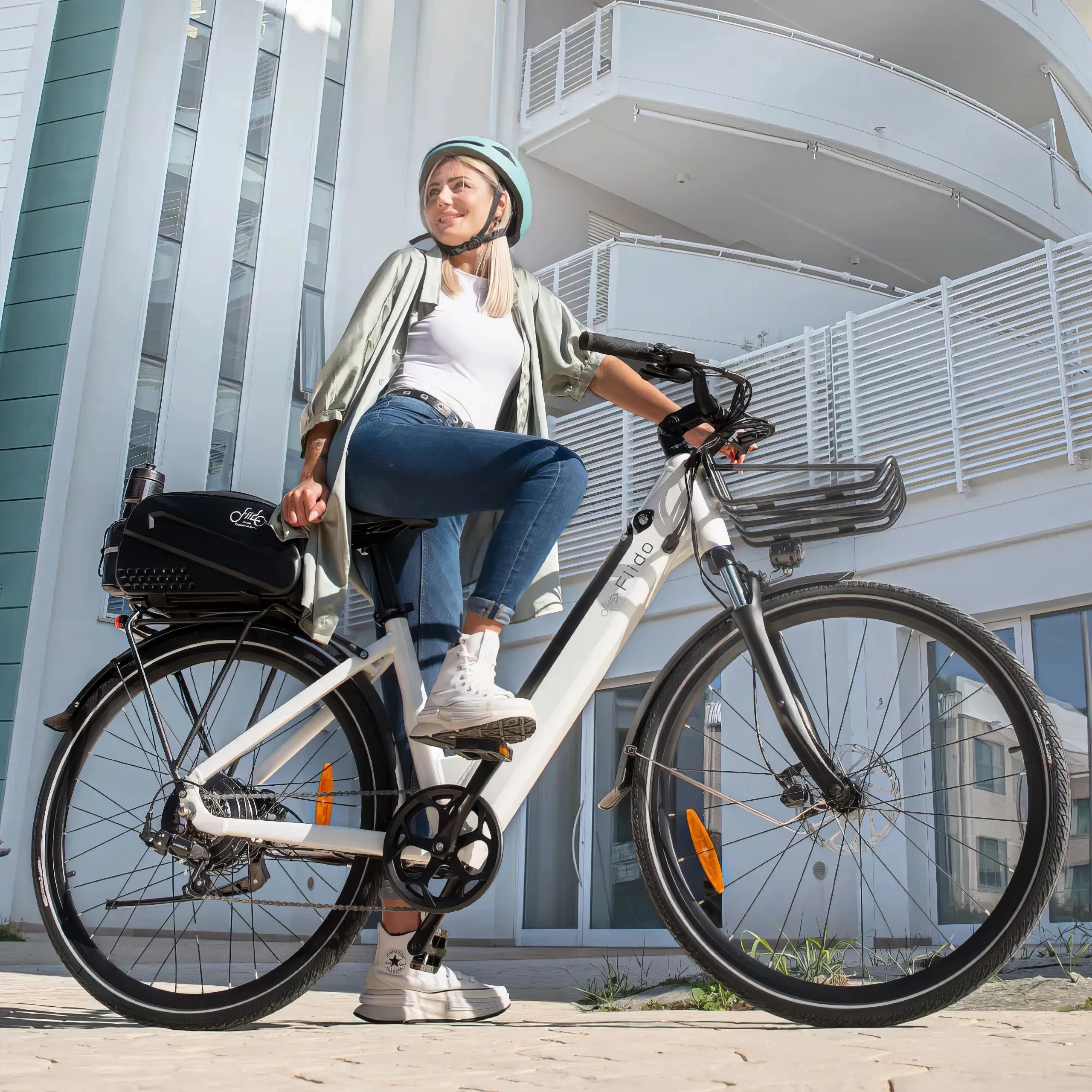 The Fiido C11 combines power, range, and comfort in a thoughtfully designed electric bike for city life. With its step-through frame, powerful motor, and user-friendly features, this e-bike makes daily commutes, errands, and weekend explorations easier and more enjoyable. The bike is available in emerald blue or white to suit various tastes.